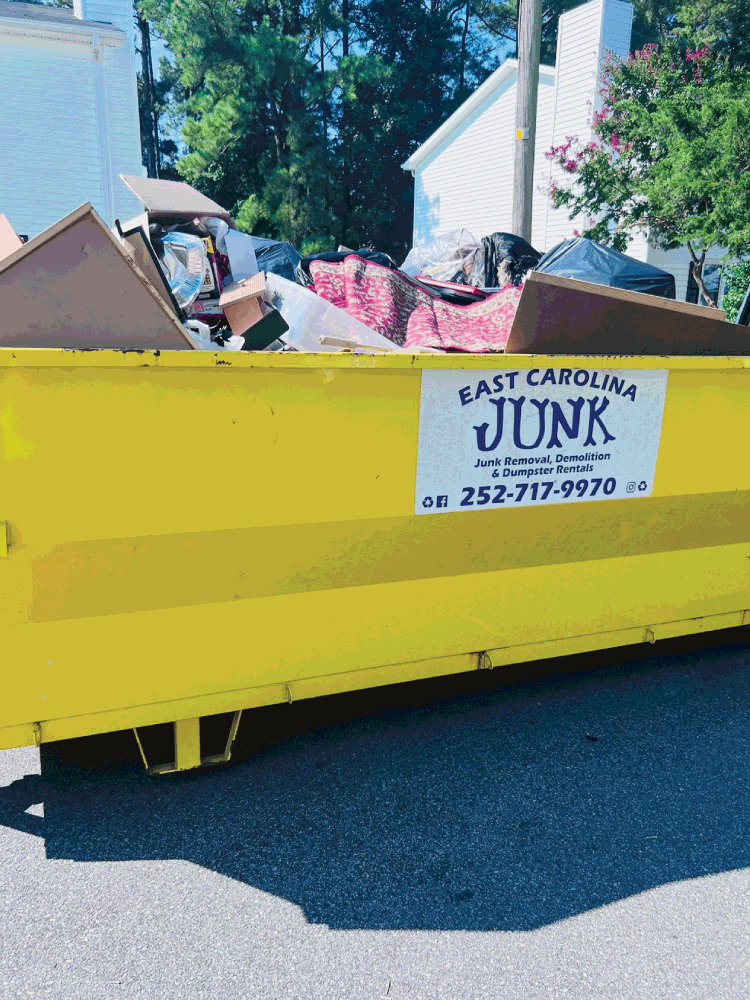 East Carolina Junk Removal, Dumpster Rentals, and Demolition is a family owned and operated business serving the Greenville, NC area. We specialize in junk removal of all sizes, including debris removal, full-scale clean outs, and bulky item removal, and we now offer the convenience of temporary dumpster rentals for large DIY projects!