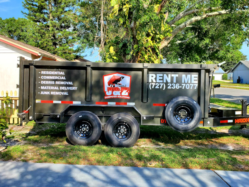 J&Z Dumpster Solutions is a local, veteran-owned business providing high quality dumpster rentals, junk removal, debris removal, material delivery, and light demolition services in the Pasco County, FL area. Our professional crew understands the importance of getting the job done accurately and efficiently. Our mission is to provide an exceptional level of service—one that customers have come to count on from us. We offer late-model dumpster trailers that are driveway-safe. We accommodate residential and commercial projects, and we’re fully licensed and insured. Contact us today to find out more and get a free quote!